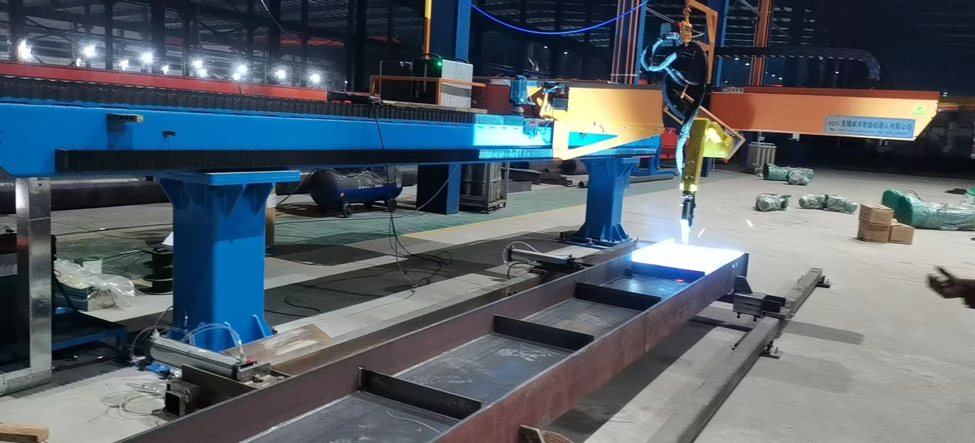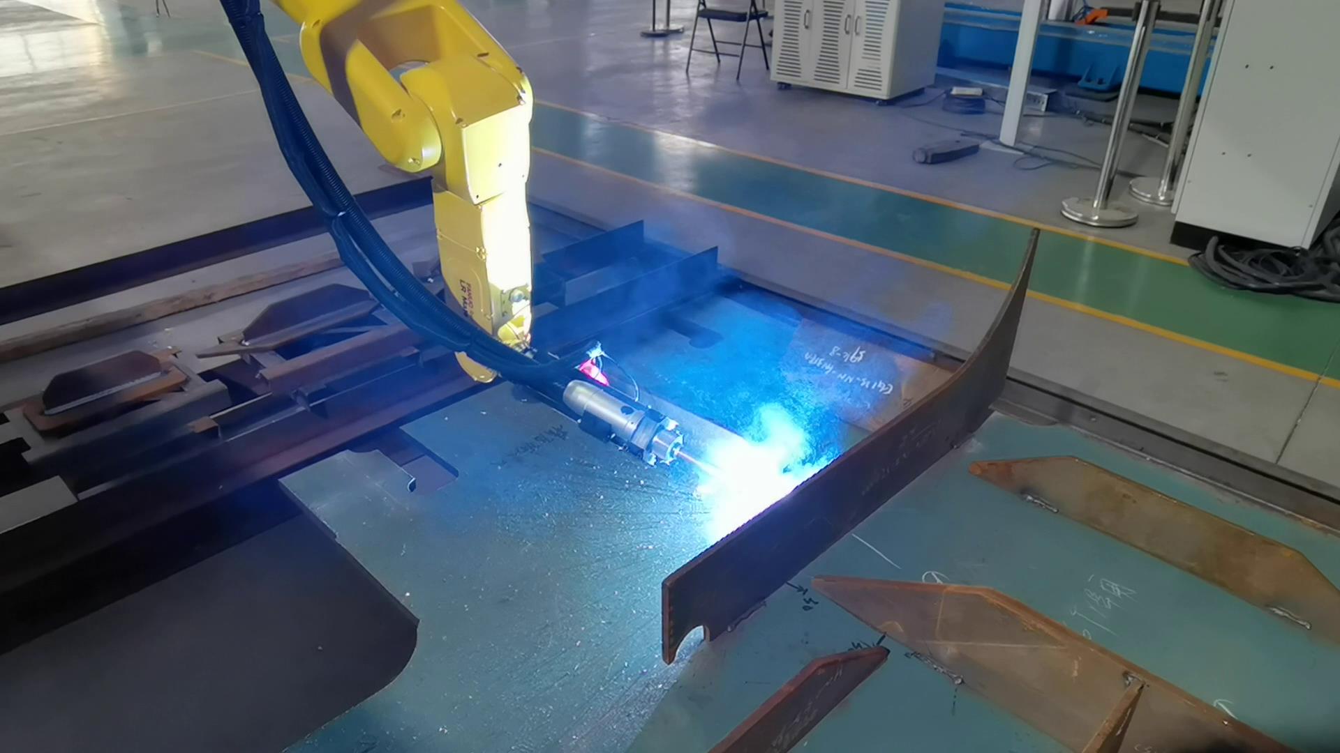 智能焊接在鋼構行業(yè)的成功應用針對鋼結構中常見的H型鋼等鋼梁工件,威卓設計研發(fā)了小龍門智能焊接工作站,焊槍部分使用鋼梁專用焊槍,更適用于鋼梁焊接;搭配傳感器使用,自動尋位識別焊縫,無